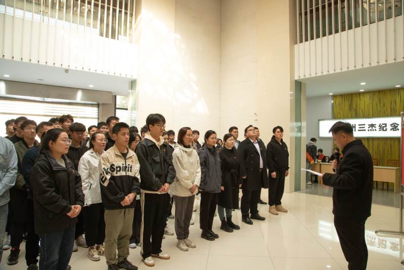 在“三杰厅”中,贾仕林带领师生党员面向党旗,庄严宣誓,重温入党誓词,并作《学好光辉党史,砥砺初心使命,凝聚奋进力量》微党课,对新时代研究生青年谆谆教诲。他结合党史学习,生动讲述了“常州三杰”革命精神,并就如何弘扬传承“常州三杰”革命精神、同心共筑研究生教育梦强大合力、为学校研究生事业的高质量发展凝心聚力。