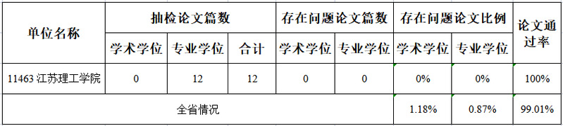 近日,江苏省学位委员会、省教育厅反馈2022-2023学年度授予硕士学位的学位论文抽检结果,我校被随机抽取的12篇学位论文全部通过专家评议,无“存在问题论文”,通过率达100%。这一成绩体现了我校在研究生学位论文质量与学术规范管理方面的显著成效。